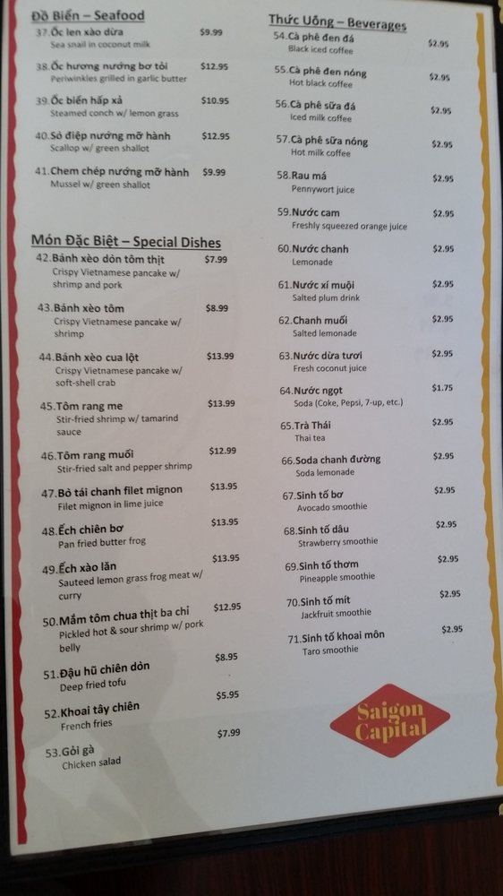 Whether you're dining in or opting for takeout, the casual atmosphere is welcoming for families and groups alike. Don't miss the opportunity to savor these culinary gems at Saigon Capital, where every meal is crafted with passion and authenticity.
