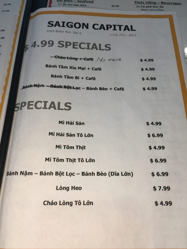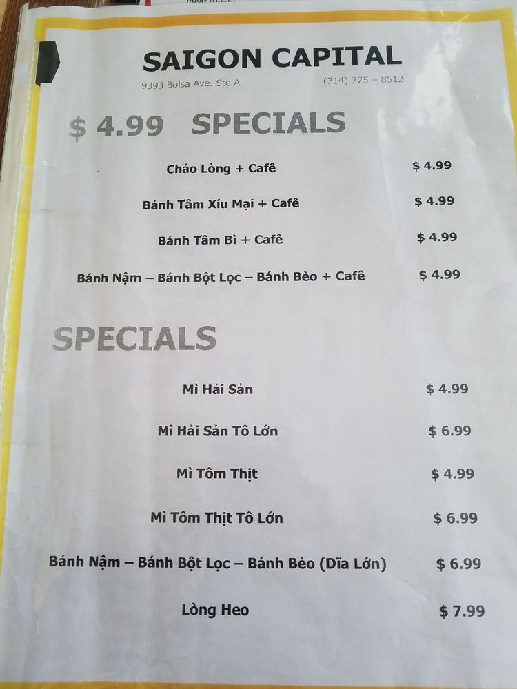 Saigon Capital Restaurant in Westminster, CA, is a delightful haven for Vietnamese cuisine enthusiasts. With a focus on authentic flavors, the menu features standout dishes like the tender Bo Luc Lac and the savory Ca Kho To, both praised for their quality and taste. The extensive selection includes vegetarian options, ensuring all guests are catered for.
